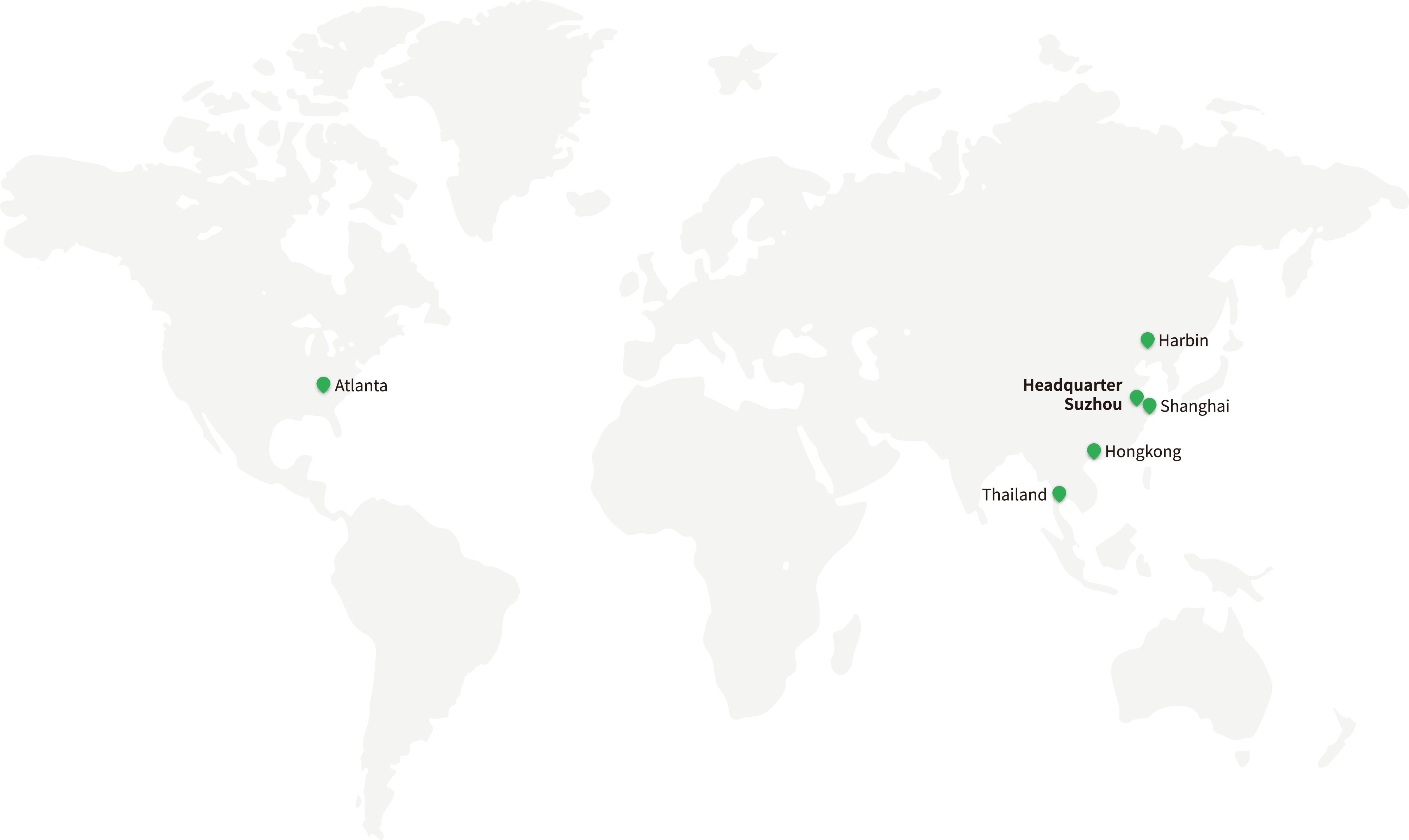 Layout: Suzhou headquarters, Shanghai branch, Harbin R&D center, Hong Kong, US subsidiaries, Thailand factory;